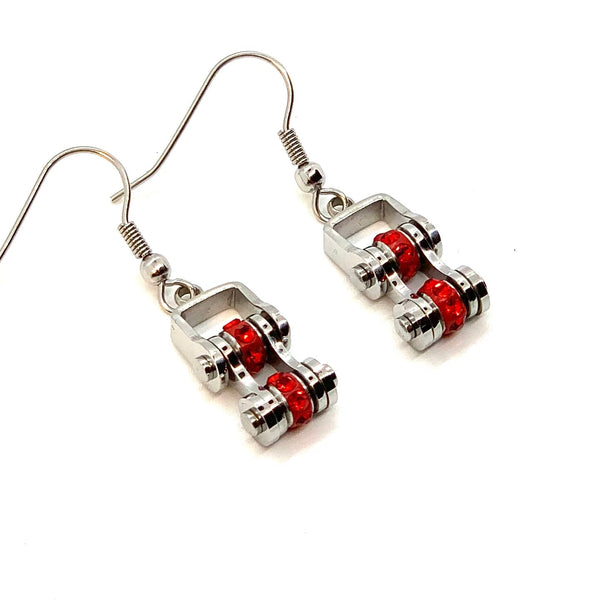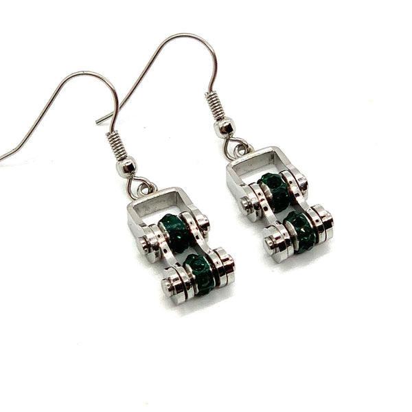 SK2004E MINI Two Tone Silver Turquoise With Crystal Centers Bike Chain Earrings Stainless Steel Motorcycle Biker Jewelry $20.00