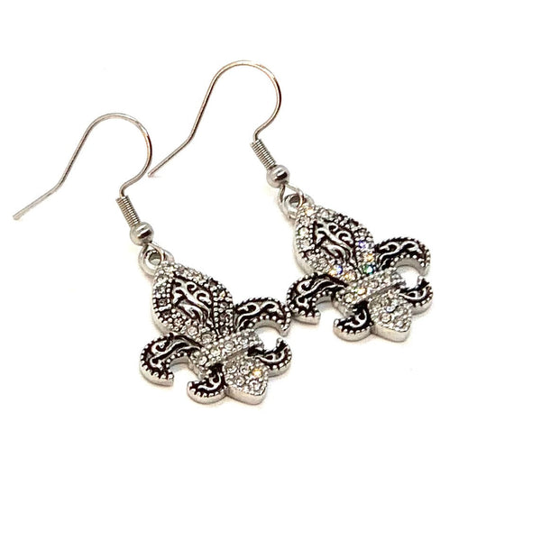 SK2278E Fleur De lis Mini Mini 3/8" Wide Stainless Steel Crystal Earrings $20.00