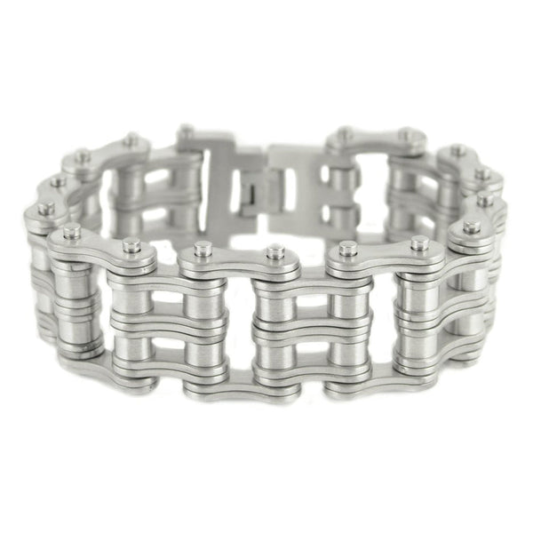 SK18421" WideAll New BRUSHED FinishDouble Roller DesignStainless Steel Motorcycle Chain Bracelet