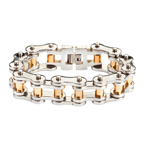 SK12591" WideSilver Gold THICK LINKMen's Stainless Steel Motorcycle Chain Bracelet