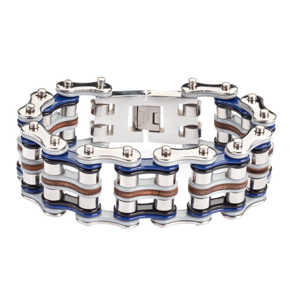 SK1293 1/2" Wide Tri-Color Blue Black Silver Original DesignStainless Steel Motorcycle Bike Chain Bracelet