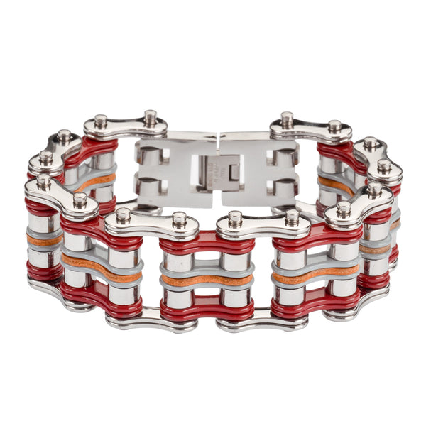 • Sk1230 3/4’ Wide Two Tone Silver Candy Red Double Link Design Men’s Bike Chain Bracelets