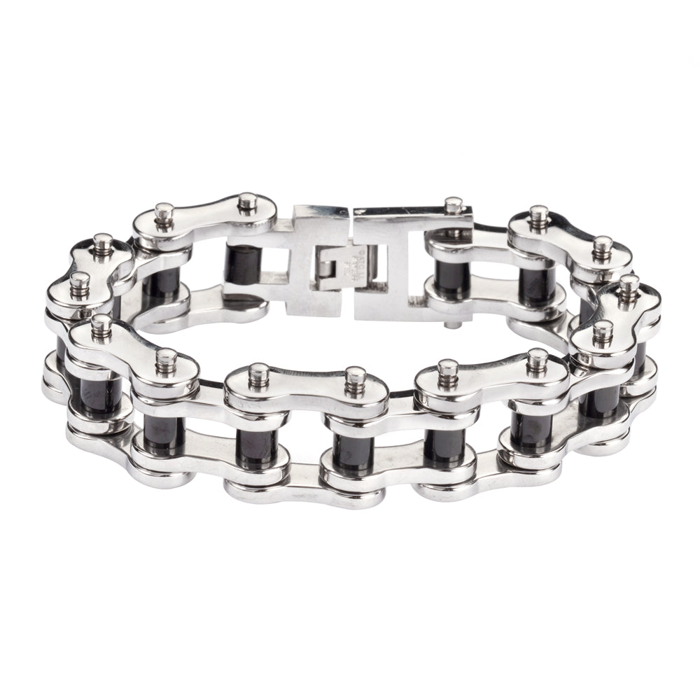 $71.30SK1189 3/4" Wide Stainless Black Rollers THICK LINK Men's Stainless Steel Motorcycle Chain BraceletAdd to WishlistQuick View {"id":10896392646,"title":"SK1189 Stainless Black Rollers 3\/4\" Wide THICK LINK Men's Stainless Steel Motorcycle Chain Bracelet","handle":"stainless-black-rollers-thick","description":"\u003cspan class=\"auto-style8\"\u003eSK1189\u003cbr\u003e 3\/4\" Wide\u003cbr\u003e Stainless Black Rollers THICK LINK\u003cbr\u003e Men's Stainless Steel Motorcycle Chain Bracelet\u003c\/span\u003e","published_at":"2017-07-14T07:41:30-04:00","created_at":"2017-07-14T07:42:44-04:00","vendor":"Bike Chain Jewelry","type":"Men's Bike Chain Bracelets","tags":["DISCONTINUED","SaleOct2024","spo-cs-disabled","spo-default","spo-disabled","spo-notify-me-disabled"],"price":7130,"price_min":7130,"price_max":7130,"available":true,"price_varies":false,"compare_at_price":null,"compare_at_price_min":0,"compare_at_price_max":0,"compare_at_price_varies":false,"variants":[{"id":46030955846,"title":"8.5","option1":"8.5","option2":null,"option3":null,"sku":"SK1189\/8.5","requires_shipping":true,"taxable":true,"featured_image":null,"available":true,"name":"SK1189 Stainless Black Rollers 3\/4\" Wide THICK LINK Men's Stainless Steel Motorcycle Chain Bracelet - 8.5","public_title":"8.5","options":["8.5"],"price":7130,"weight":0,"compare_at_price":null,"inventory_quantity":6,"inventory_management":"shopify","inventory_policy":"deny","barcode":"600184104473","requires_selling_plan":false,"selling_plan_allocations":[]},{"id":39302650462317,"title":"9","option1":"9","option2":null,"option3":null,"sku":"SK1189\/9","requires_shipping":true,"taxable":true,"featured_image":null,"available":true,"name":"SK1189 Stainless Black Rollers 3\/4\" Wide THICK LINK Men's Stainless Steel Motorcycle Chain Bracelet - 9","public_title":"9","options":["9"],"price":7130,"weight":0,"compare_at_price":null,"inventory_quantity":1,"inventory_management":"shopify","inventory_policy":"deny","barcode":"600184104480","requires_selling_plan":false,"selling_plan_allocations":[]},{"id":50529296711972,"title":"9.5","option1":"9.5","option2":null,"option3":null,"sku":"SK1189\/9.5","requires_shipping":true,"taxable":true,"featured_image":null,"available":true,"name":"SK1189 Stainless Black Rollers 3\/4\" Wide THICK LINK Men's Stainless Steel Motorcycle Chain Bracelet - 9.5","public_title":"9.5","options":["9.5"],"price":7130,"weight":0,"compare_at_price":null,"inventory_quantity":23,"inventory_management":"shopify","inventory_policy":"deny","barcode":"","requires_selling_plan":false,"selling_plan_allocations":[]}],"images":["\/\/bikechainjewelry.com\/cdn\/shop\/files\/SK1189.jpg?v=1758133706"],"featured_image":"\/\/bikechainjewelry.com\/cdn\/shop\/files\/SK1189.jpg?v=1758133706","options":["Size"],"media":[{"alt":"Sk1189 Stainless Black Rollers 3\/4’’ Wide Thick Link Men’s Steel Motorcycle Chain Bracelet","id":44116690665764,"position":1,"preview_image":{"aspect_ratio":1.0,"height":1000,"width":1000,"src":"\/\/bikechainjewelry.com\/cdn\/shop\/files\/SK1189.jpg?v=1758133706"},"aspect_ratio":1.0,"height":1000,"media_type":"image","src":"\/\/bikechainjewelry.com\/cdn\/shop\/files\/SK1189.jpg?v=1758133706","width":1000}],"requires_selling_plan":false,"selling_plan_groups":[],"content":"\u003cspan class=\"auto-style8\"\u003eSK1189\u003cbr\u003e 3\/4\" Wide\u003cbr\u003e Stainless Black Rollers THICK LINK\u003cbr\u003e Men's Stainless Steel Motorcycle Chain Bracelet\u003c\/span\u003e"}