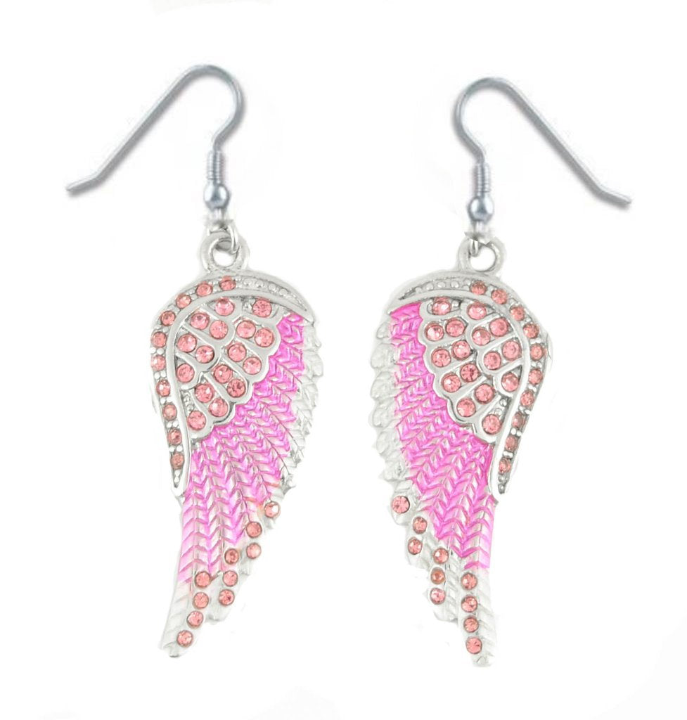 SK2249 Pink Painted Winged French Wire Earring Pink Imitation Crystals