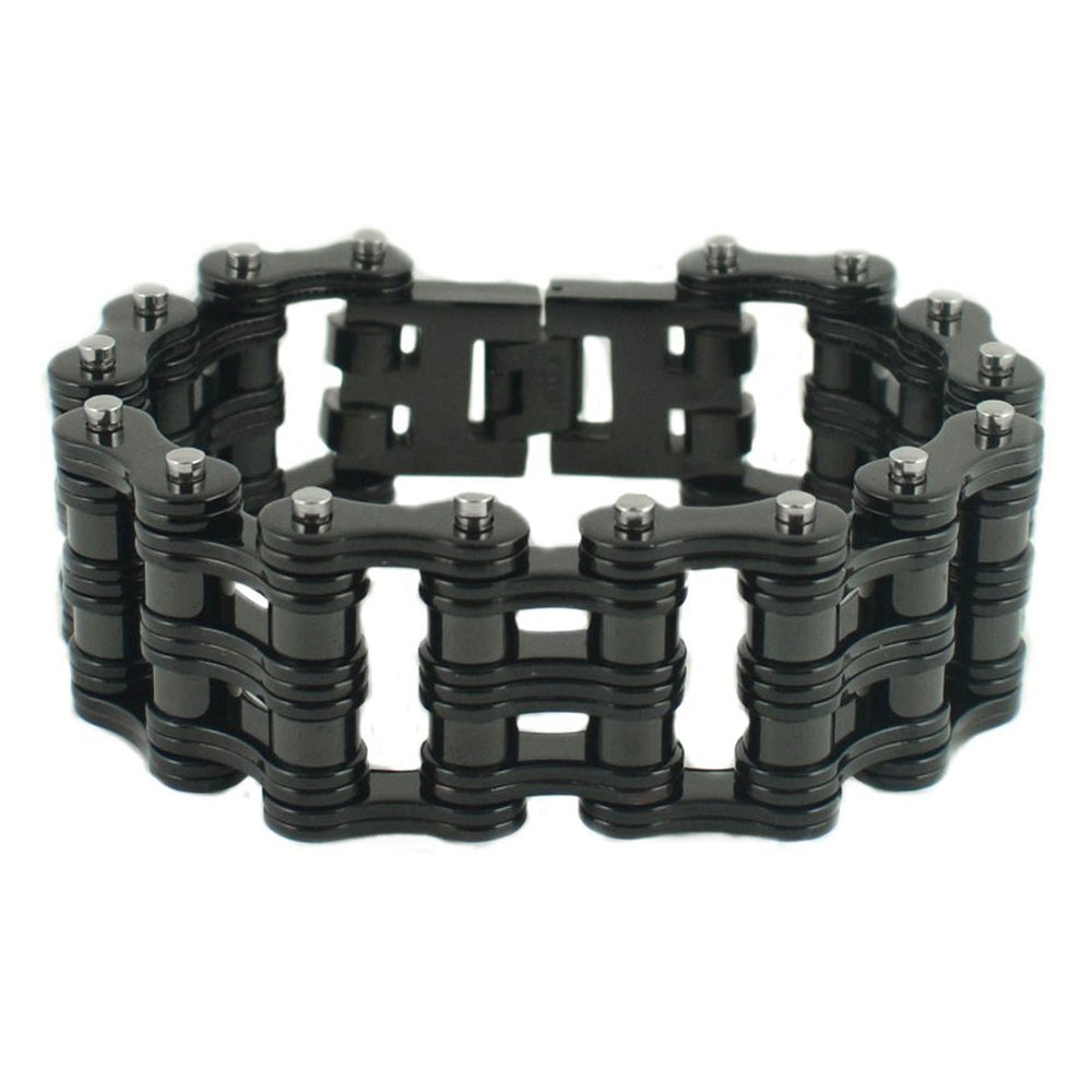 SK1814 All Black 1" Wide Unisex Stainless Steel Motorcycle Chain Bracelet