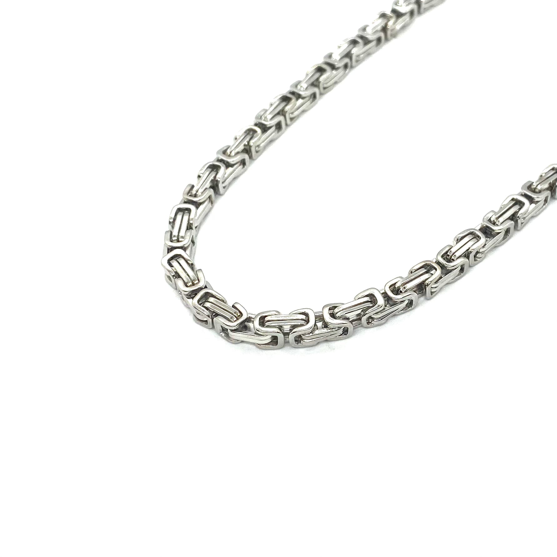 BYZ5M Necklace 5MM Wide Byzantine Chain Silver Color. Available in 24" Length. High quality 316L Stainless Steel. Also available in Gunmetal BYZG5M