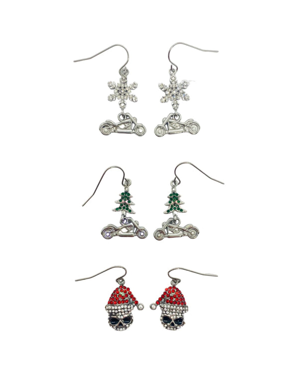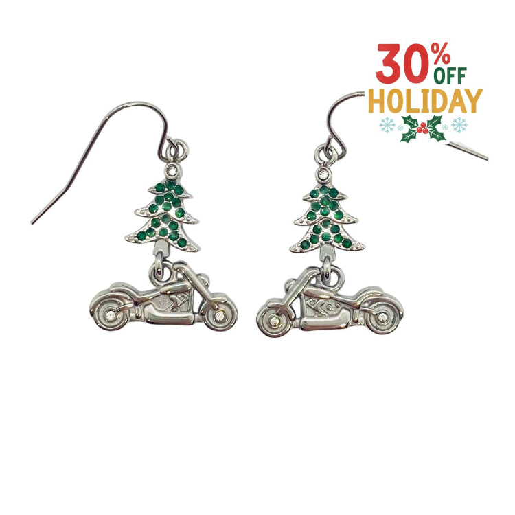 SK2706 Ladies Holiday Earrings Christmas Tree with Motorcycle